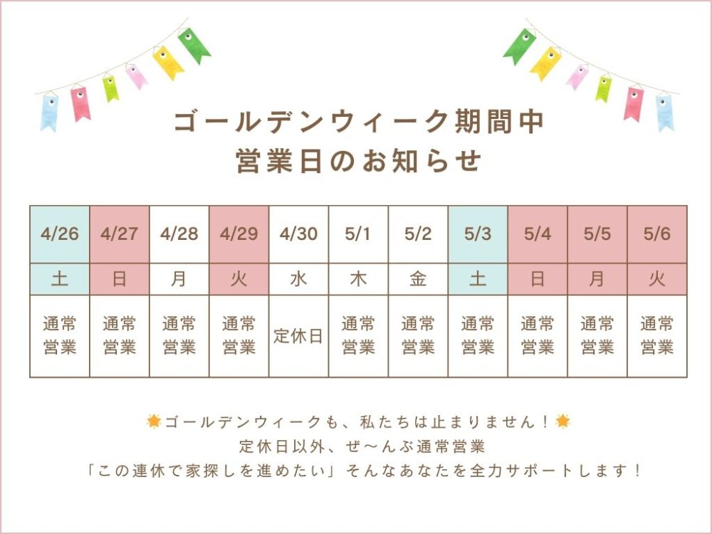 ◤お知らせ◢ ゴールデンウイークの営業日