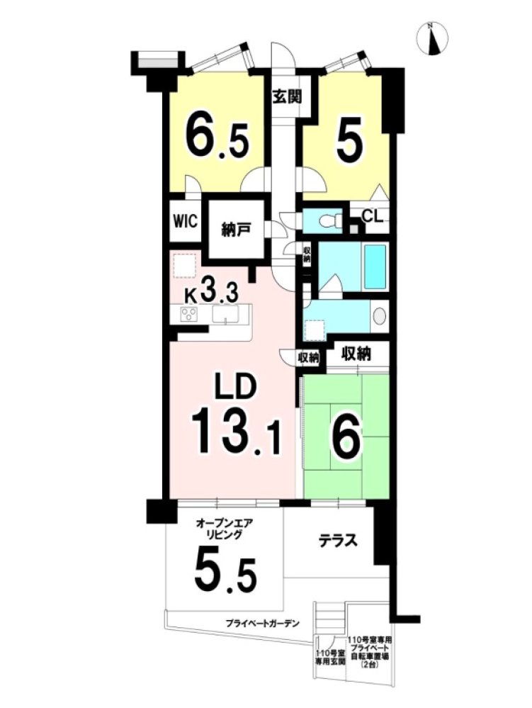 | 専有面積 | 76.20㎡ (壁芯) | 間取 | 3LDK |