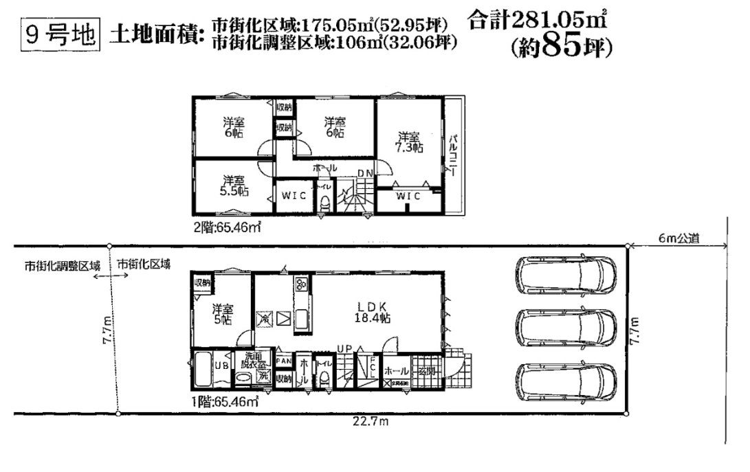 | 土地面積 | 275.52㎡〜281.05㎡ | 坪単価 | 34.6万円 |