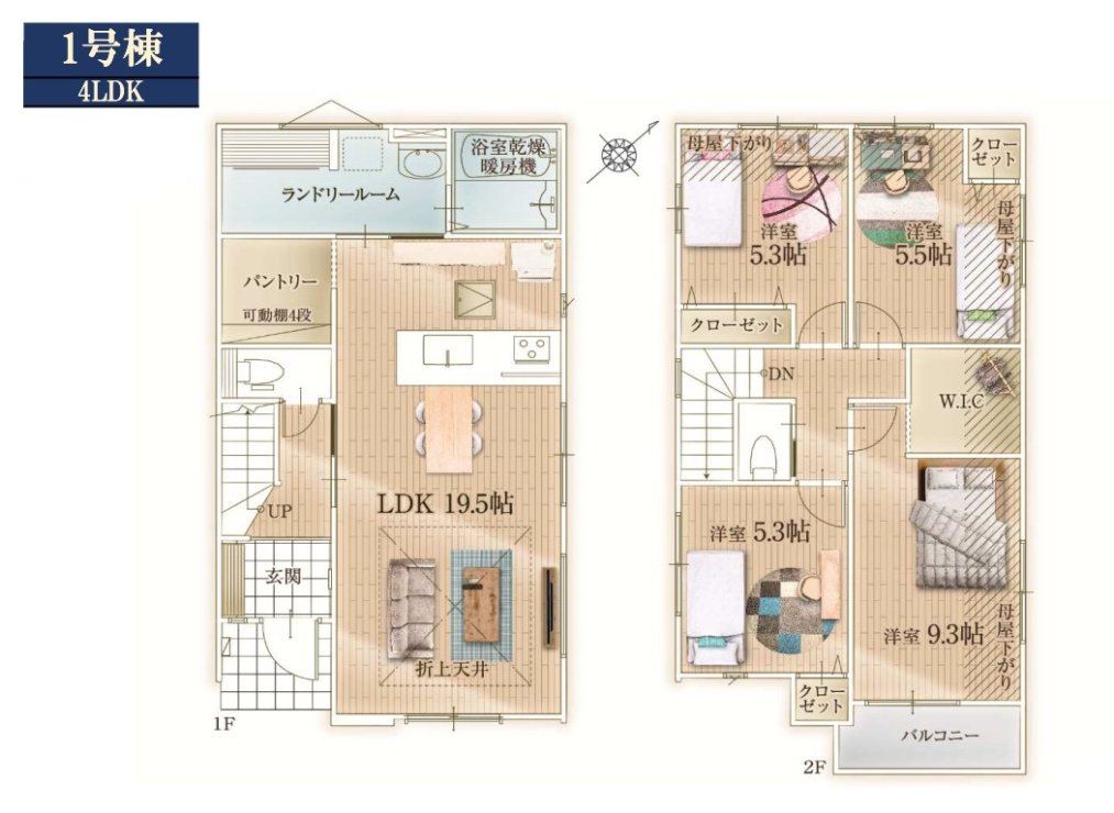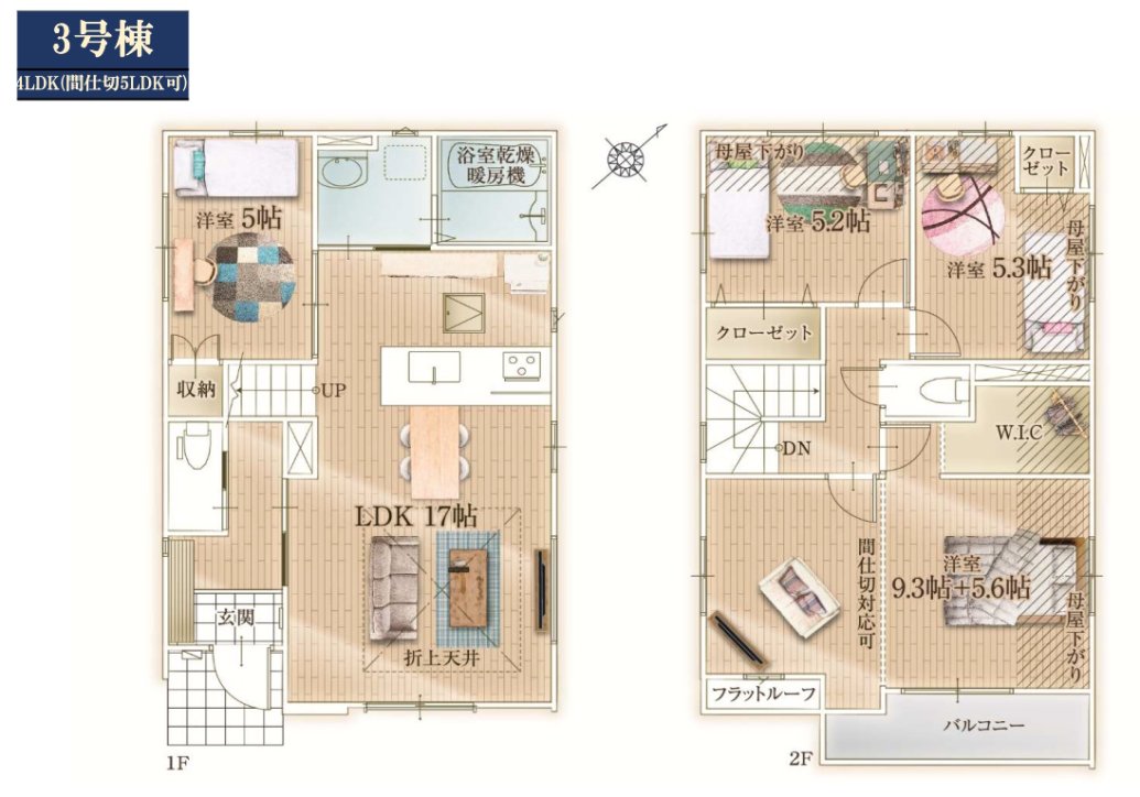 | 建物面積 | 102.24㎡〜104.88㎡ | 間取 | 3LDK〜4LDK |