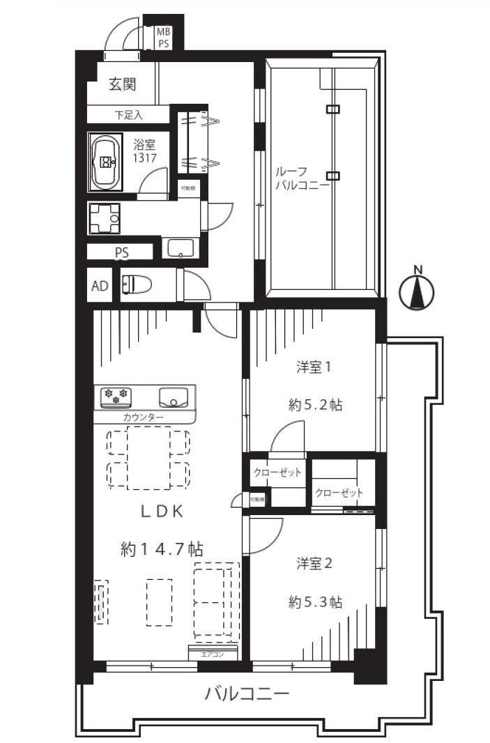 | 専有面積 | 63.35㎡ (壁芯) | 間取 | 2LDK |