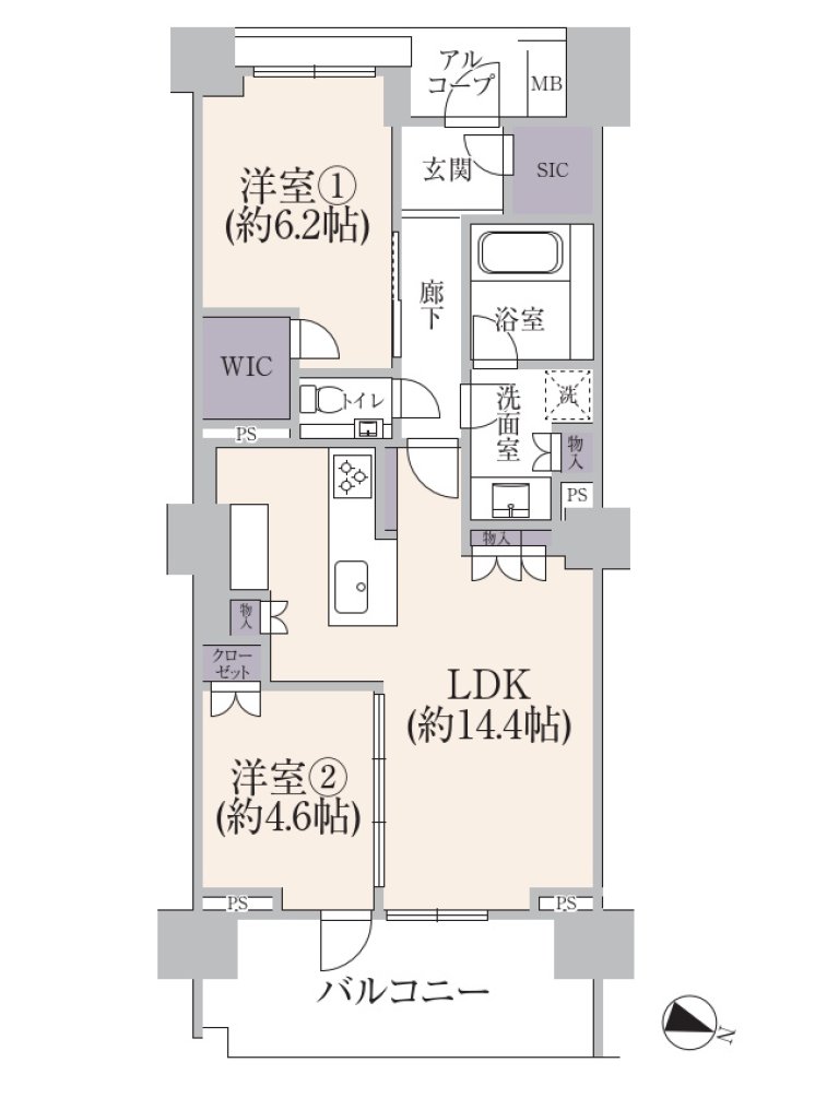 | 専有面積 | 62.05㎡ (壁芯) | 間取 | 2LDK |