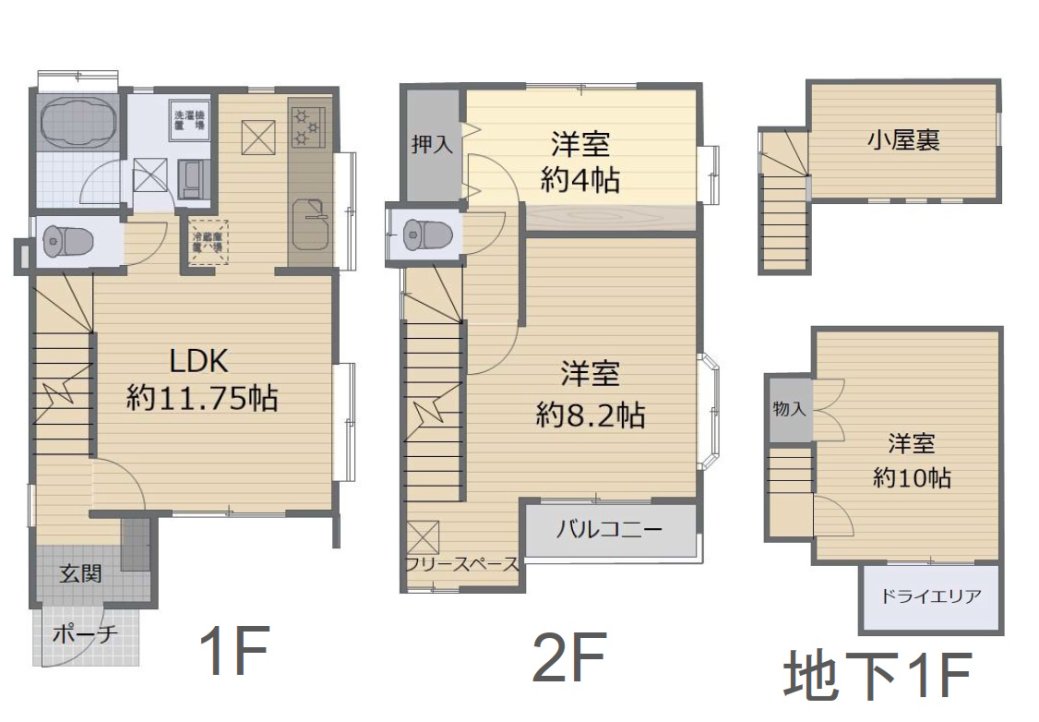 | 土地面積 | 63.77㎡ | 建物面積 | 82.90㎡ |