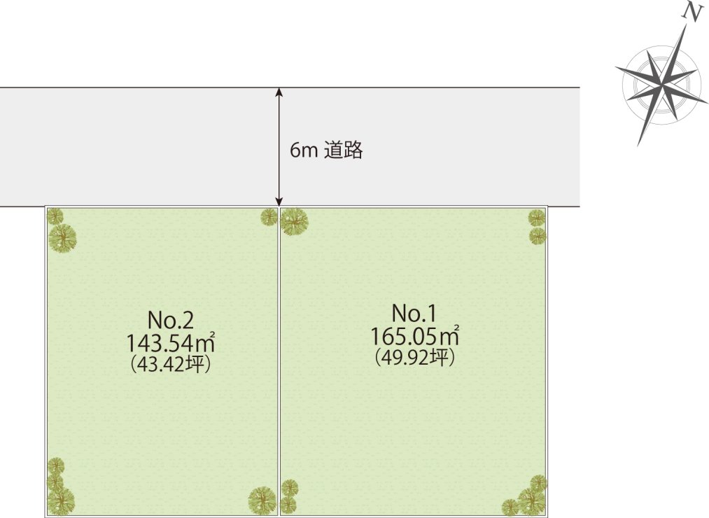 | 販売区画数 | 全2区画 今回販売2区画 | 土地面積 | 143.54㎡〜165.05㎡ |