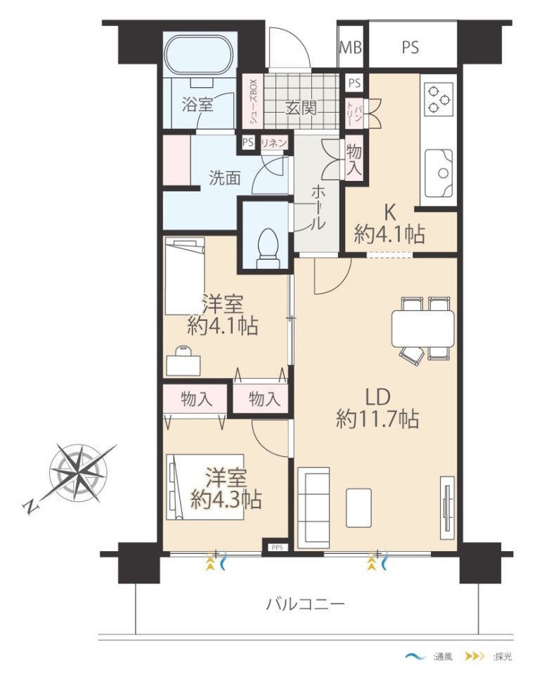 | 専有面積 | 57.14㎡ | 間取 | 2LDK |