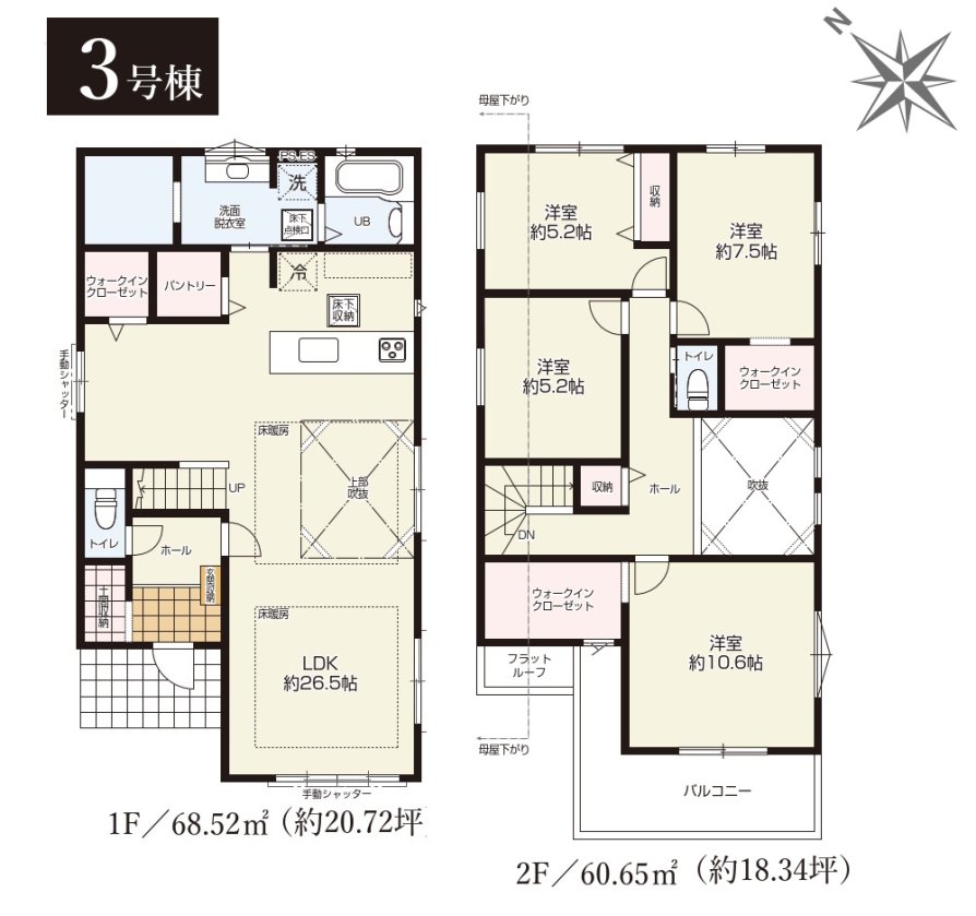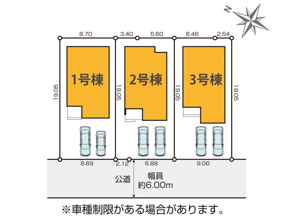 | 販売棟数 | 全3棟 今回販売3棟 | 土地面積 | 165.60㎡〜171.41㎡ |
