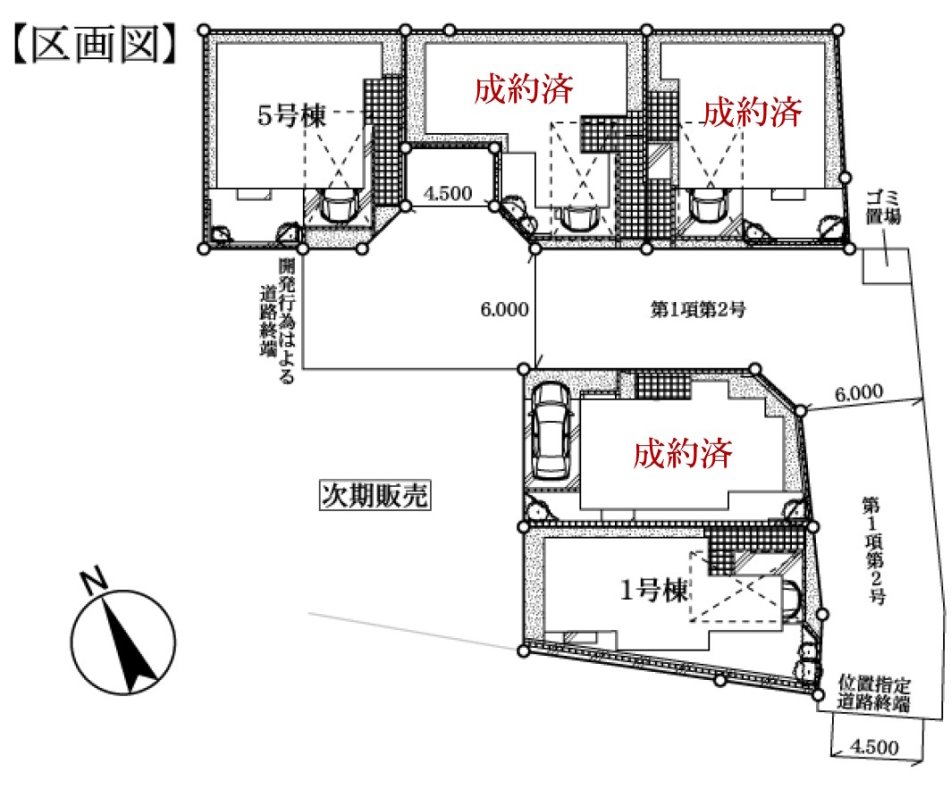 | 販売棟数 | 全5棟 今回販売2棟 | 土地面積 | 105.01㎡〜105.03㎡ |